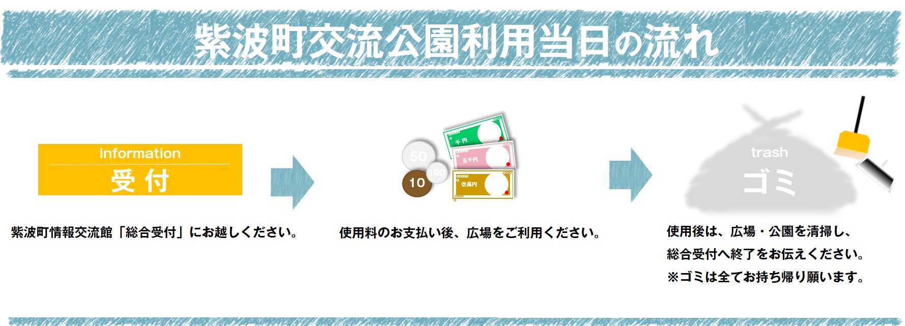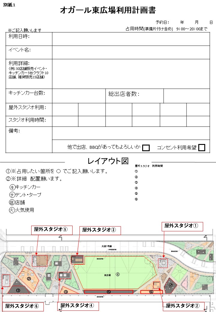 ※イベント利用時、「交流公園占用許可申請書」・「交流公園行為許可申請書」を記入していただき、イベント5日前までに交流館事務局に提出お願いします。