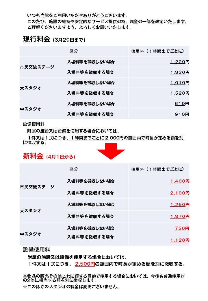 『 紫波町情報交流館 スタジオ料金一部改定のお知らせ 』