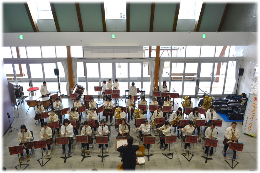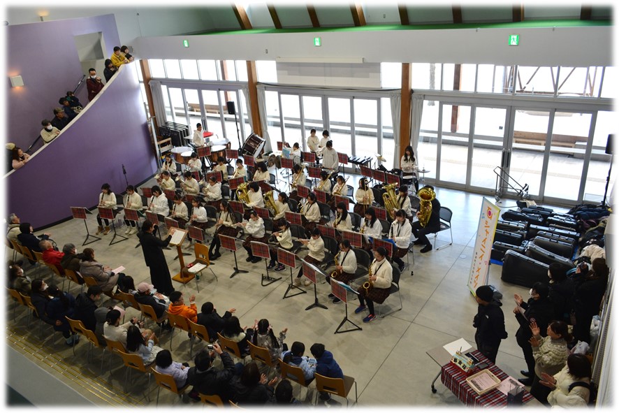 2月7日、市民交流ステージにおいて「日詰小学校吹奏楽部シャイニィ・メイツ 卒業コンサート」が開催されました。80年代メドレー、平成メドレー、卒業ソングメドレーを演奏しました。